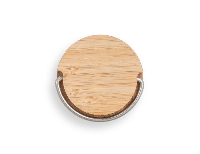 Garrafa em aço inox e bambu de parede dupla térmica, isolada a vácuo. Possui tampa com alça para fácil transporte e infusor em aço inox para chá. Capacidade até 440 mL. Preserva as bebidas quentes por 8h e as bebidas frias por 24h. Fornecida em caixa presente de papel kraft reciclado. Certificação EU Food Grade. A cor e o resultado da impressão nos materiais naturais pode variar entre produtos. ø70 x 215 mm